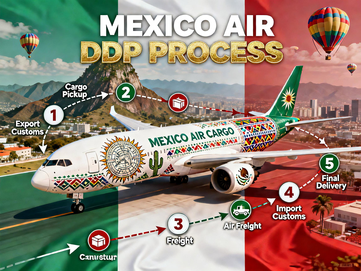 通过国际航司(EK / CV / QR / CX 等)将货物从中国主要机场空运至墨西哥主要机场 NLU(菲利佩·安赫莱斯国际机场)或 MEX(墨西哥城国际机场),货物到港后由当地清关团队完成清关及税费代缴,随后通过本地卡车或快递网络派送至 Amazon FBA 仓库、海外仓或指定收货地址,实现门到门 DDP 交付。